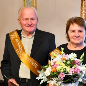 – Džiaugiamės, kad turime tokią gražią progą. Kiekvienas auksinis jubiliejus turi turtingą simboliką ir atskleidžia, jog meilė – tai už laiką ilgesnė vertybė, o šeima – tai tokia tvirta bendruomenė, kurianti visuomenės pamatus. Kiekvienas gyvenimo kelias kupinas laimės ir iššūkių. Džiugina, kad tokiu keliu Jūs ėjote ir einate kartu. Gerbiate ir vertinate vienas kitą, džiaugiatės tuo ką turite. Linkime Jums sveikatos, stiprybės, laimės ir džiaugtis tuo, ką turite ir tuo, kas dar priešakyje, – pasakė vicemeras Valdemar Sliževski sveikindamas jubiliatus.