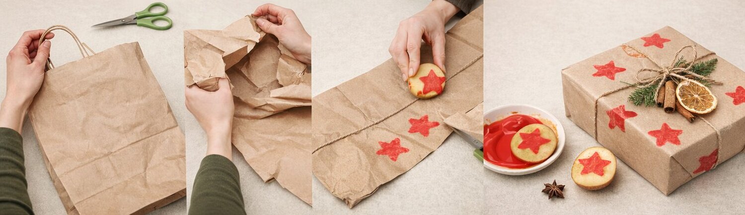 Ekologė R. Utyrienė dalinasi patarimais, kaip tvariai pakuoti dovanas ir sumažinti šventinių atliekų kiekį: „Iš panaudotų, bet vis dar tinkamų naudoti popierinių prekių maišelių lengvai galima pasigaminti dovanų pakavimo popierių. Tereikia nukirpti jų rankenas, perkirpti maišelį išilgai ir ištiesinti, kad jis taptų vientisu popieriaus lakštu. Apversti jį taip, kad matoma pusė būtų be logotipų ir naudoti kaip įprastą pakavimo popierių.“Ji taip pat atkreipia dėmesį, kad toks pakavimas gali būti ne tik praktiškas, bet ir estetiškas – papuošti jį galima rankų darbo raštais, naudojant paprastus spaudus: perpjautą bulvę, išpjaunant formą, ar džiovintos citrinos riekelę, pamirkytą natūraliuose dažikliuose. Specialistė priduria, kad vietoje tradicinių plastikinių juostelių ir blizgių kaspinų verta rinktis džiovintas gėles, šakeles, kankorėžius ar cinamono lazdeles: „Tokie elementai tarnauja ilgai, o praradus išvaizdą, juos galima kompostuoti ar išmesti kartu su maisto atliekomis“.
