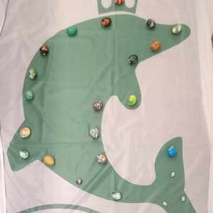 „Delfino“ namo, esančio A. Juozapavičiaus g. 3 Vilniuje, bendruomenė dar prieš Šv. Velykas susitarė rinkti kaimynišką margučių kolekciją ir iš jų sudėlioti delfino formos mozaiką. Juk smagu pasigrožėti kaimynų ir savo kūrybiškai išmargintais margučiais, kurie yra gyvybės atsiradimo, gamtos prisikėlimo simboliai! Daugiabučio vidiniame kiemelyje margučiai buvo renkami specialiai tam sukurtų dekoracijų – velykinių kiškių – apsuptyje.