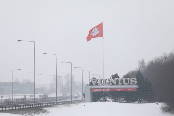 Atvykstančius į sostinę pasitinka įspūdingos Vyčio vėliavos