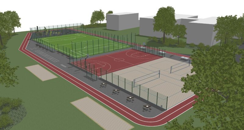 Aikštyne pirmiausia planuojama atnaujinti bėgimo taką, pakeičiant seną asfaltą minkštesne danga. Po modernizavimo bėgimo takas apjuos taip pat minkšta danga išklotą krepšinio aikštelę, dvi naujas paplūdimio tinklinio aikšteles bei dirbtinės dangos futbolo aikštę. Ten pat bus įrengta modernių treniruoklių erdvė, pora petankės aikštelių, keturi stalo teniso stalai.