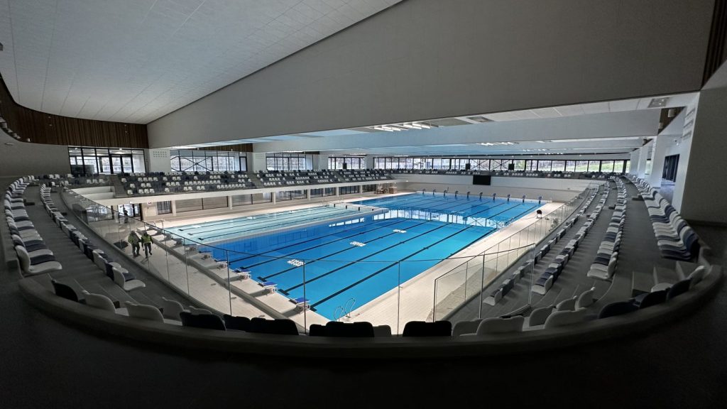 Abiejų baseinų – 25 m ir 50 m – dugnai yra pagal poreikį pakeliami, taip keičiant jų gylį. Nardymo baseino dugnas juda nuo 30 cm virš baseino lygio iki 5 metrų gylio. Dalis didžiojo – 50 m – baseino gali būti gilinama iki 3 metrų. Baseino pertvaros didįjį baseiną taip pat leidžia skaidyti į kelias mažesnes dalis, kad tuo pačiu baseine galėtų treniruotis skirtingos grupės. Pavyzdžiui, gilesnėje zonoje gali vykti atletų treniruotės, o seklesnėje – plaukimo pamokos vaikams.