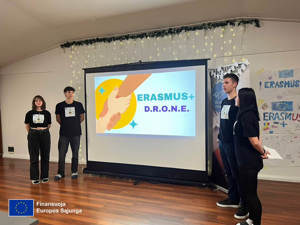 Galutinių dronų valdymo projektų prezentacijų publikacija: https://issuu.com/keliaukpirmyn/docs/erasmus_d.r.o.n.e._-_final_drone_operating_projec