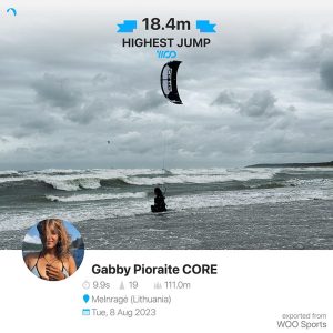 Jėgos aitvarų sporto profesionalė Gabrielė Pioraitė Baltijos jūroje iššoko į 18,4 metro aukštį, taip pagerindama savo pačios anksčiau pasiektą Lietuvos rekordą. Tai trisdešimties metų sportininkei yra ypatingas įvykis, vainikuojantis jos grįžimą į mėgstamą veiklą po prieš dvejus metus patirtos traumos.