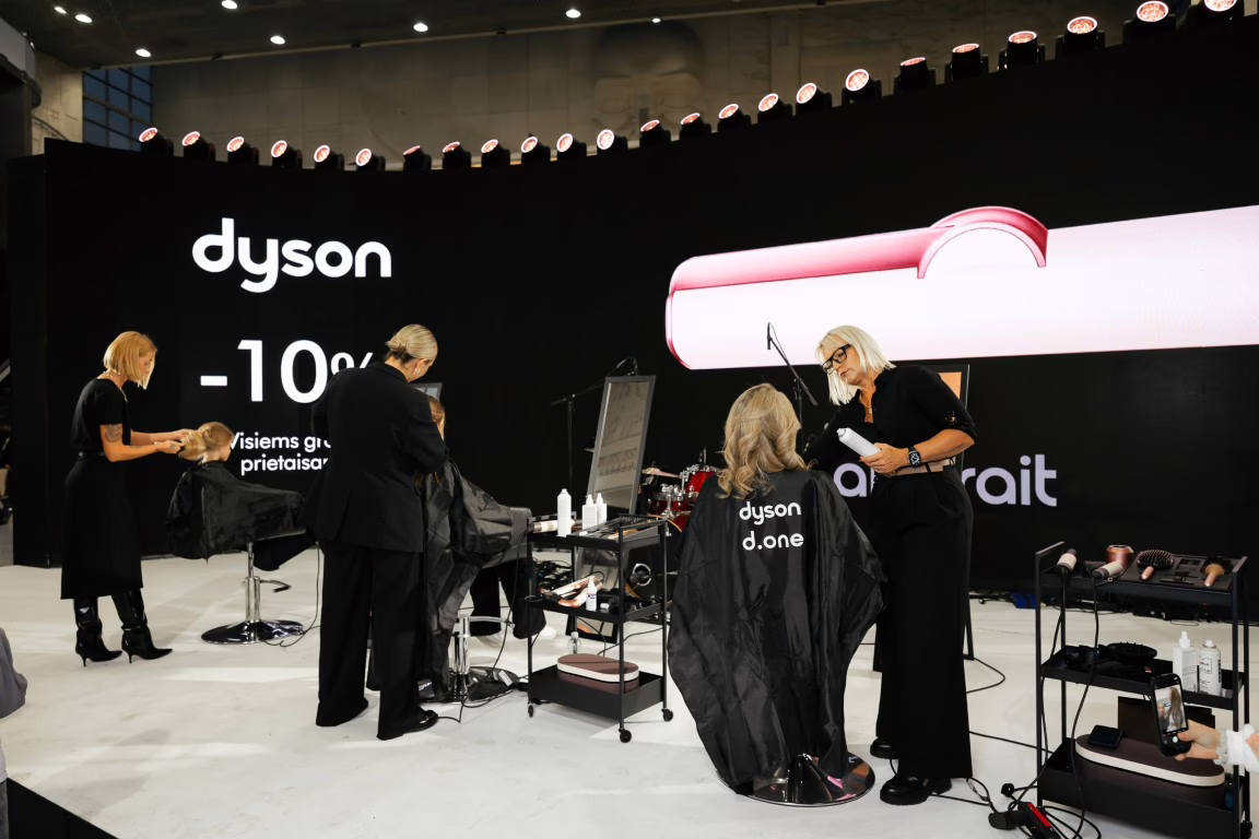 Prie pagrindinio MEGOS įėjimo jau nuo vidurdienio veikė „Dyson“ grožio stotelės, sulaukusios ypač didelio praeivių susidomėjimo ir nusidriekusių eilių: čia lankytojai galėjo išbandyti naujausius įrenginius ir pasimokyti iš profesionalių stilistų nedidelių, bet veiksmingų gudrybių, kaip lengvai kurti grožį kasdien namuose.