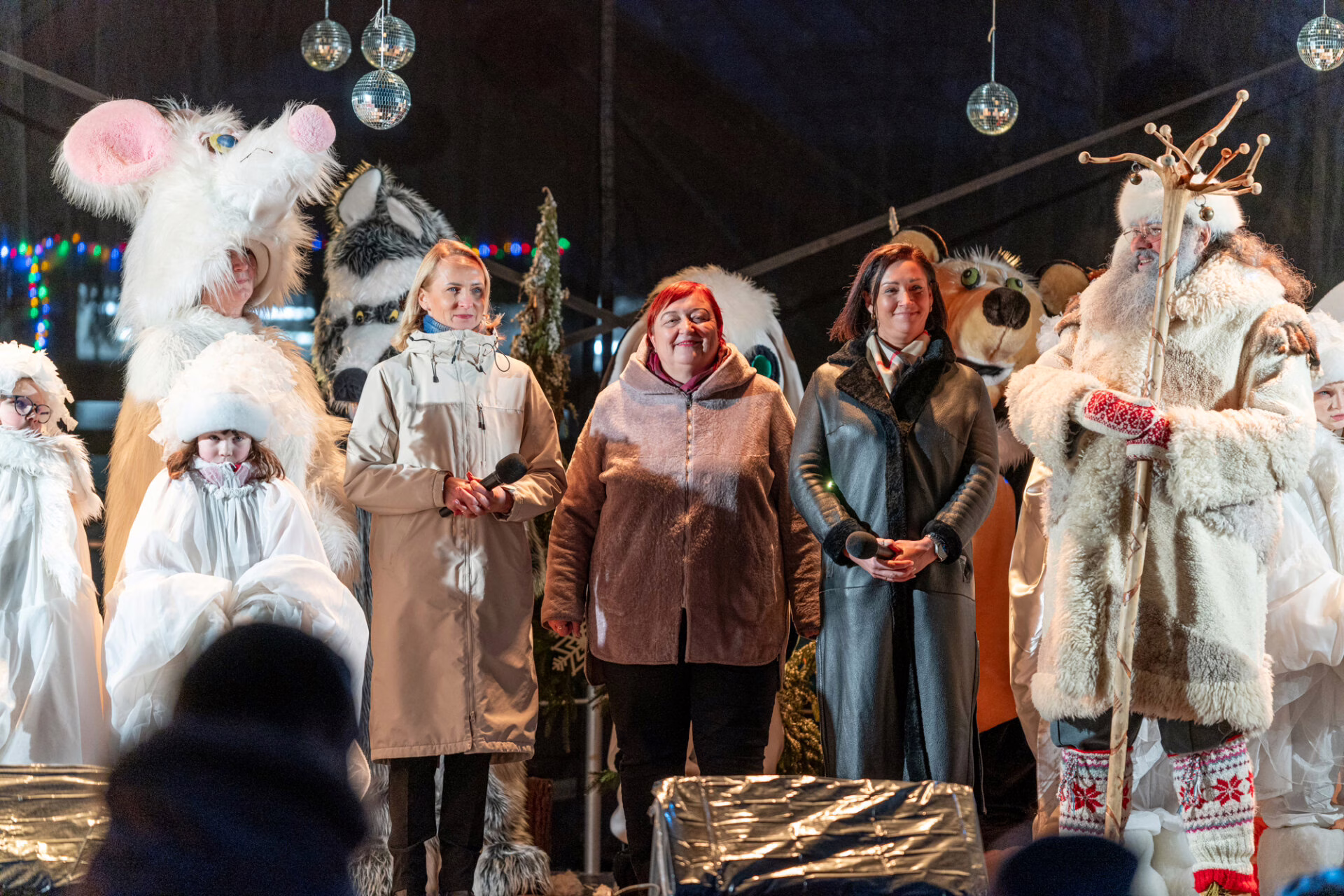 Renginį pradėjo smagi animacinė muzikinė programa, kuri akimirksniu įtraukė mažuosius žiūrovus. Netrukus aikštėje nuaidėjo džiaugsmingos emocijos – skambant dainai „Kalėdos“, iškilmingai atvyko ypatingiausias vakaro svečias – Lietuvos vyriausiasis Senelis Kalėda. Išlipęs iš gaisrinės automobilio, jis pasveikino susirinkusius ir padovanojo šventinę dainą.