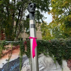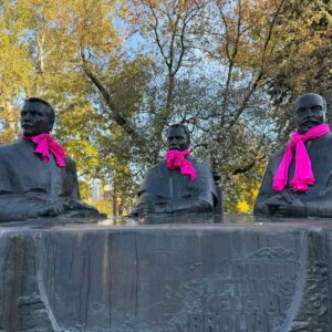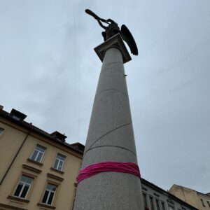 Rožiniai šalikai ant 6 žymių sostinės paminklų