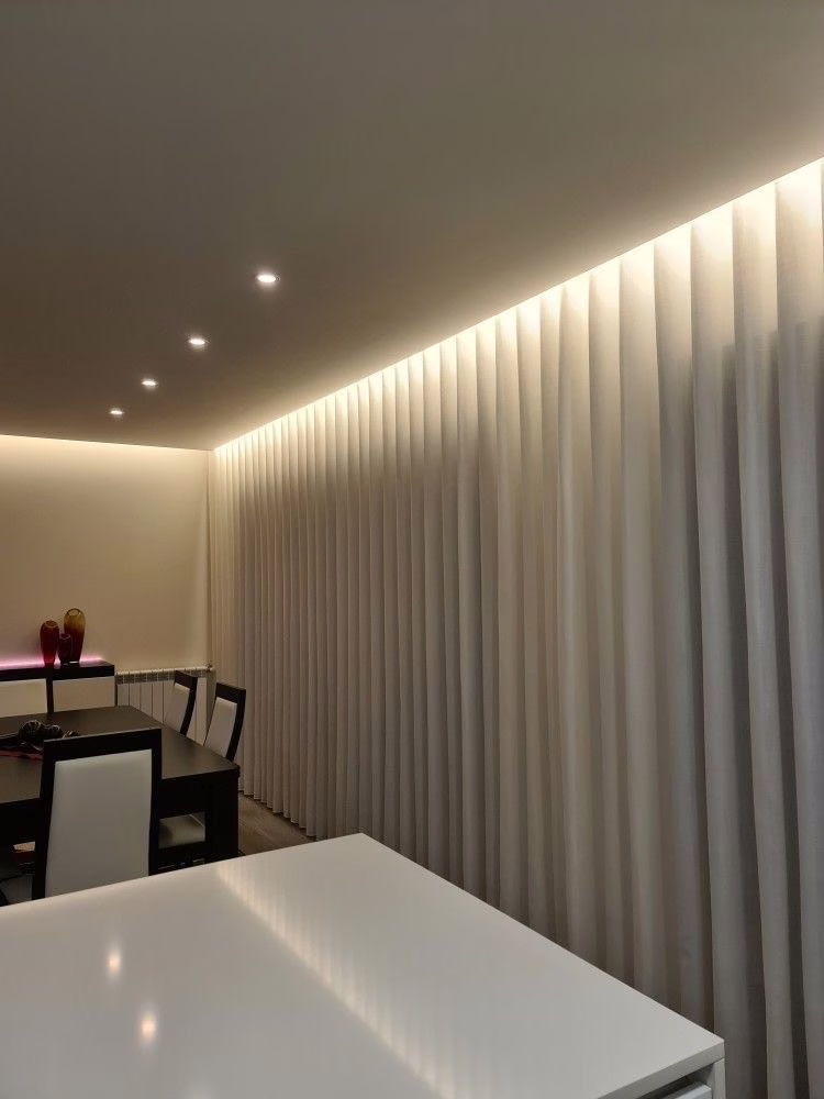„Šiandien jau turbūt nebėra namų, kuriuose nebūtų LED juostų vienose ar kitose zonose, tai labai populiarus ir klientų mėgstamas sprendimas, be to, tai tikrai padeda sukurti jaukų, estetišką apšvietimą namuose. Mano rekomendacija visada nusimatyti LED juostas nišose, virtuvės darbastalio zonoje, praėjimuose koridoriuje ar vonioje, kadangi tai puikus variantas ir naktiniam apšvietimui. Be to, vis populiariau tampa LED juostomis apšviesti laiptus, kurti įvairias LED juostų kompozicijas namuose ir turėti įdomų, išskirtinį apšvietimo sprendimą, kurį LED juostomis puikiai galima įgyvendinti“, – patarimais dalinasi apšvietimo specialistas Julius.