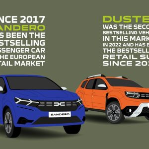 Maža to, šeštus metus iš eilės (nuo 2017 m.) „Dacia Sandero“ buvo daugiausiai parduodamas automobilis Europos mažmeninėje rinkoje. Pernai „Duster“ minėtoje kategorijoje užėmė antrąją vietą, o nuo 2018 m. jis taip pat yra geriausiai parduodamas visureigis mažmeninėje rinkoje.