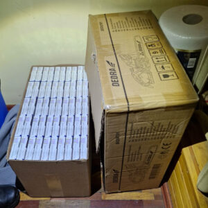 Sostinės policijos pareigūnai viename iš namų Lazdynėliuose rado tikrą „lobį“ – 5 872 pakelius kontrabandinių rūkalų ir apie 500 l galimai naminės degtinės.
