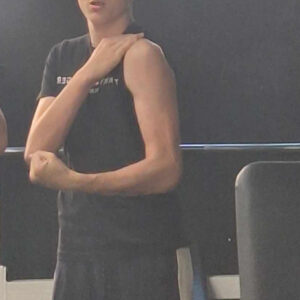 Išeidamas galėjo dėvėti juodos spalvos šortus bei megztinį.