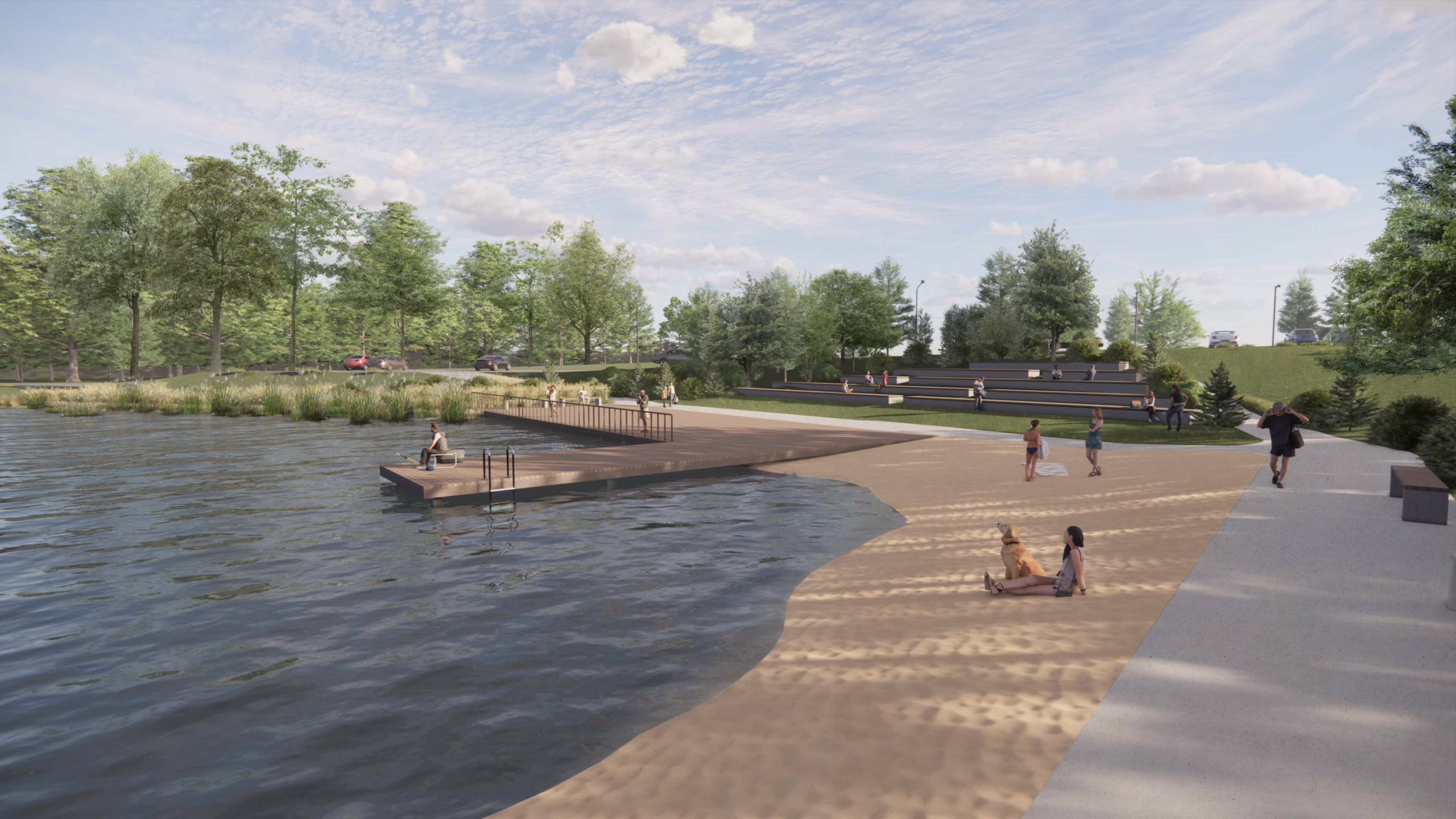 Krantinėje su terasa šlaite planuojama įrengti sėdimas vietas su vaizdu į tvenkinį bei apie 300 kv. m paplūdimio zoną su smėlio danga bei patogiu priėjimu prie vandens. Poilsio aikštelė bus įrengiama esamo miško properšoje su medinėmis konstrukcijomis, suoliukais ir gultais, o centrinėje teritorijos dalyje numatoma pusiau uždara stoginė su laužaviete ir lauko muzikos instrumentų alėja. Miške bus įrengta žaidimų erdvė su disko golfo aikštynu bei vaikų žaidimų aikštele su saugiais virvių parko įrenginiais. Sporto ir paplūdimio erdvėje išsaugota esama futbolo aikštė, įrengti konteineriniai persirengimo pastatai, paplūdimio tinklinio aikštė, naujos krantinės/lieptai, vaikų žaidimų aikštelės ir sanitariniai mazgai.