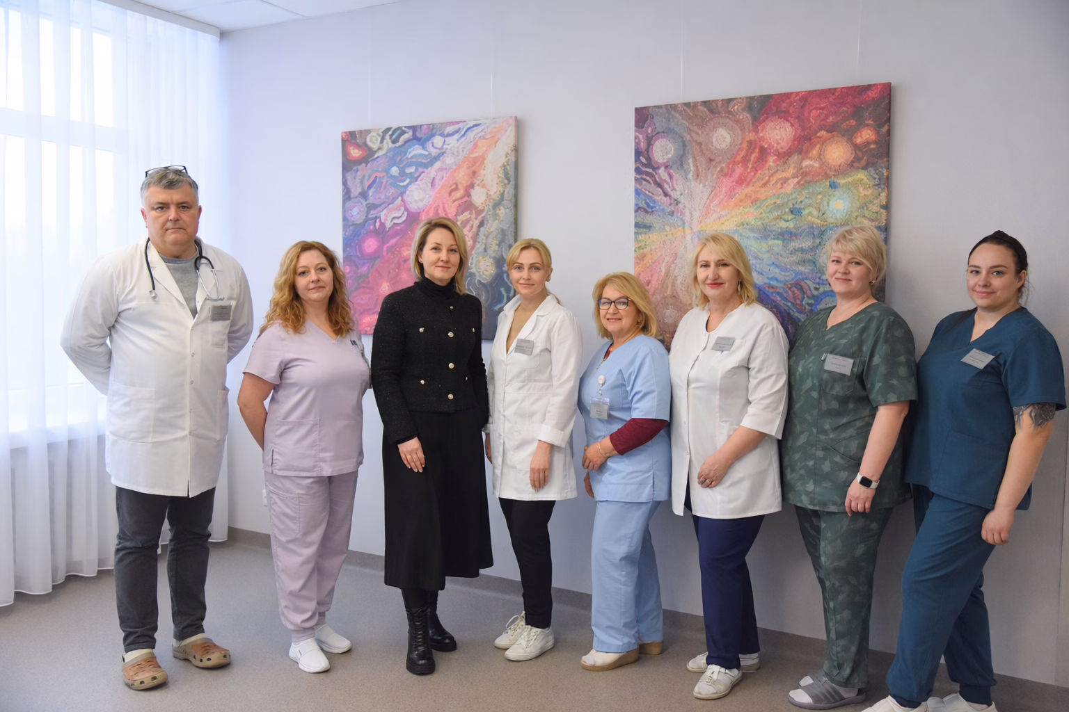 – Dėkoju visai ligoninės komandai už didžiulę kantrybę remonto darbų metu. Specialistų organizuotumas ir mobilizacija leido mums dirbti pilnu pajėgumu, o darbus atlikę UAB „Alzeta“ meistrai buvo be galo supratingi ir stengėsi kelti kuo mažiau nepatogumų. Dėkoju ir UAB „Diaverum klinikos“ už finansinę paramą įsigyjant įrangą, – sako ligoninės direktorė Valentina Vaitkienė. – Simboliška, kad skyriaus sienas papuošė mūsų rajono šviesuolės, tautodailininkės Anos Krepštul siuvinėtų darbų ir gobelenų elementų fotodrobės. Iš pokalbio su tautodailininkės muziejaus darbuotoja Alina Moločko sužinojome, jog savo laiškuose a .a. Ana Krepštul ne kartą šiltai minėjusi šiame skyriuje ją gydžiusius ir slaugiusius medikus, – tęsia ligoninės vadovė.