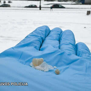 Tikrinant ir apžiūrint automobilį „Škoda“, ant galinės sėdynės rasta metalinė dėžutė su galimai narkotinių medžiagų likučiais, o ant vairuotojo sėdynės – kristalinės medžiagos gabaliukai, galimai narkotinės medžiagos. Pareigūnams paklausus, kas buvo laikoma indelyje ir kam priklauso rasta kristalinė galimai narkotinė medžiaga, abu vyrai nepripažino, kad tai jų daiktai. Kas ir kokiomis aplinkybėmis pardavė šias medžiagas, asmenys neatskleidė.