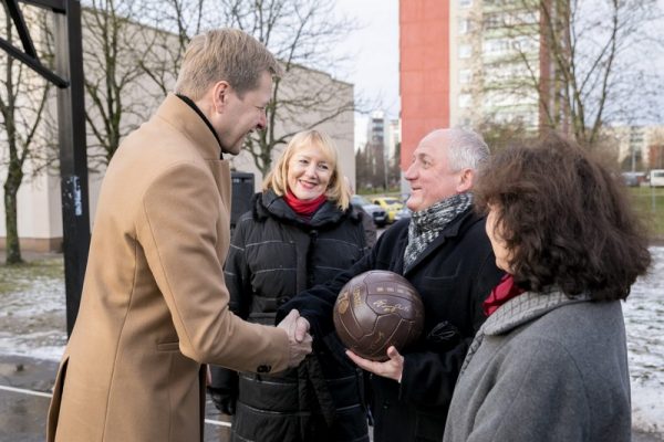 „Tai yra daugiau nei maža futbolo aikštelė su geriausia sostinėje danga – tai didelių pokyčių pradžia. Jau kitąmet Karoliniškėse ir Pilaitėje suplanuoti statyti du dengti tarptautinius reikalavimus atitinkantys futbolo maniežai. Be to, kitąmet pradedame visą Vilnių apimsiančią mokyklų futbolo stadionų vejos atnaujinimo programą – atnaujinsime ne mažiau kaip 10 prie ugdymo įstaigų esančių futbolo aikštynų. Futbolo stadionų atnaujinimui ketinama skirti apie 300 tūkst. eurų”, – įteikdamas kamuolį sakė Vilniaus meras Remigijus Šimašius.