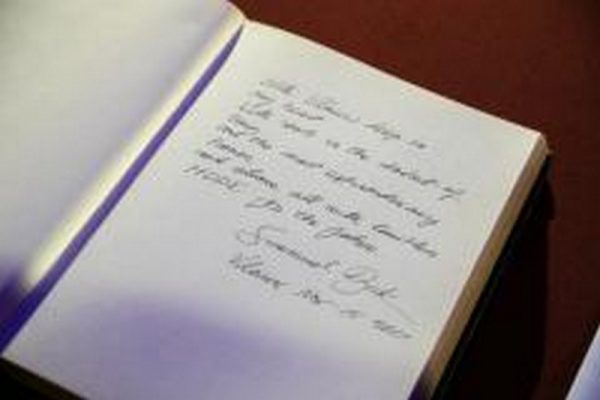 „Gyvenime man labai sekėsi: mano menas vertinamas, jo dėka galiu laisvai gyventi, mano paveikslai įvertinti nesuskaičiuojamu kiekiu premijų, apdovanojimų, tačiau turiu pripažinti, kad priimdamas visus šiuos savo kūrybos įvertinimus dažniausiai jausdavausi vienišas. Šįvakar viskas kitaip: šalia manęs yra mano tėvas, mano seneliai, tetos, dėdės ir daugybė beveidžių senojo Vilniaus žydų, kurių gyvenimai buvo nutraukti. Visi jie yra čia ir dabar didžiuojasi savo berniuku ir džiaugiasi šio renginio ypatingumu. Būtent dėl jų padovanojau Lietuvai didžiulę savo darbų kolekciją, jų atminimui skiriu Bako muziejų. Esu nepaprastai dėkingas visiems, kurie padėjo įgyvendinti šiuos planus – tai išsipildžiusi graži svajonė.” – sakė Samuelis Bakas.