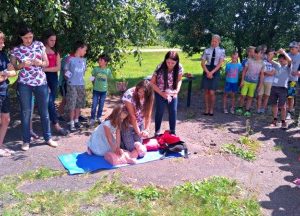 Šalčininkų rajono visuomenės sveikatos biuro specialistės papasakojo apie vasarą tykančius pavojus, pirmosios medicinos pagalbos suteikimą asmeniui netekus sąmonės ar užspringus, susižalojus. Visi dalyvavo linksmosiose estafetėse, piešė spalvotu smėliu.