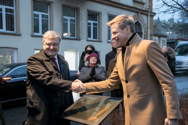 Skverui, įsikūrusiam tarp Arklių g. ir Visų Šventųjų g., Ukrainos skvero pavadinimas suteiktas dar pernai, tačiau iškilmingo lentelės atidengimo buvo laukiama iki Ukrainos prezidento vizito.