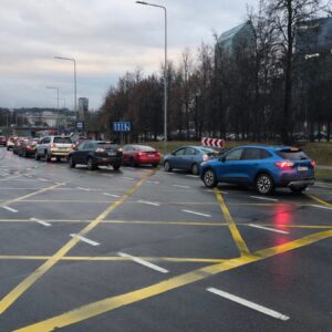 Vakar Vilniaus apskr. pareigūnai stebėjo, ar skubantys transporto priemonių vairuotojai vienoje judriausių sostinės gatvių sankirtų nepažeidžia kelio ženklinimo reikalavimų – nesavalaikio įvažiavimo į sankirtą ir sustojimo ant užbrūkšniuoto ploto. Kelių eismo taisyklių 1.32 punkto reikalavimų nesilaikymas – horizontalus ženklinimas „Geltonomis linijomis pažymėtas plotas važiuojamųjų dalių sankirtoje“ žymi vietą, į kurią įvažiuoti draudžiama, jeigu joje ar už jos yra kliūtis, kuri priverstų vairuotoją sustoti važiuojamųjų dalių sankirtoje. Nesavalaikis įvažiavimas į sankirtą ir sustojimas ant užbrūkšniuoto ploto sudaro trukdžius judėti kitiems vairuotojams ir įtakoja spūsčių susidarymą.
