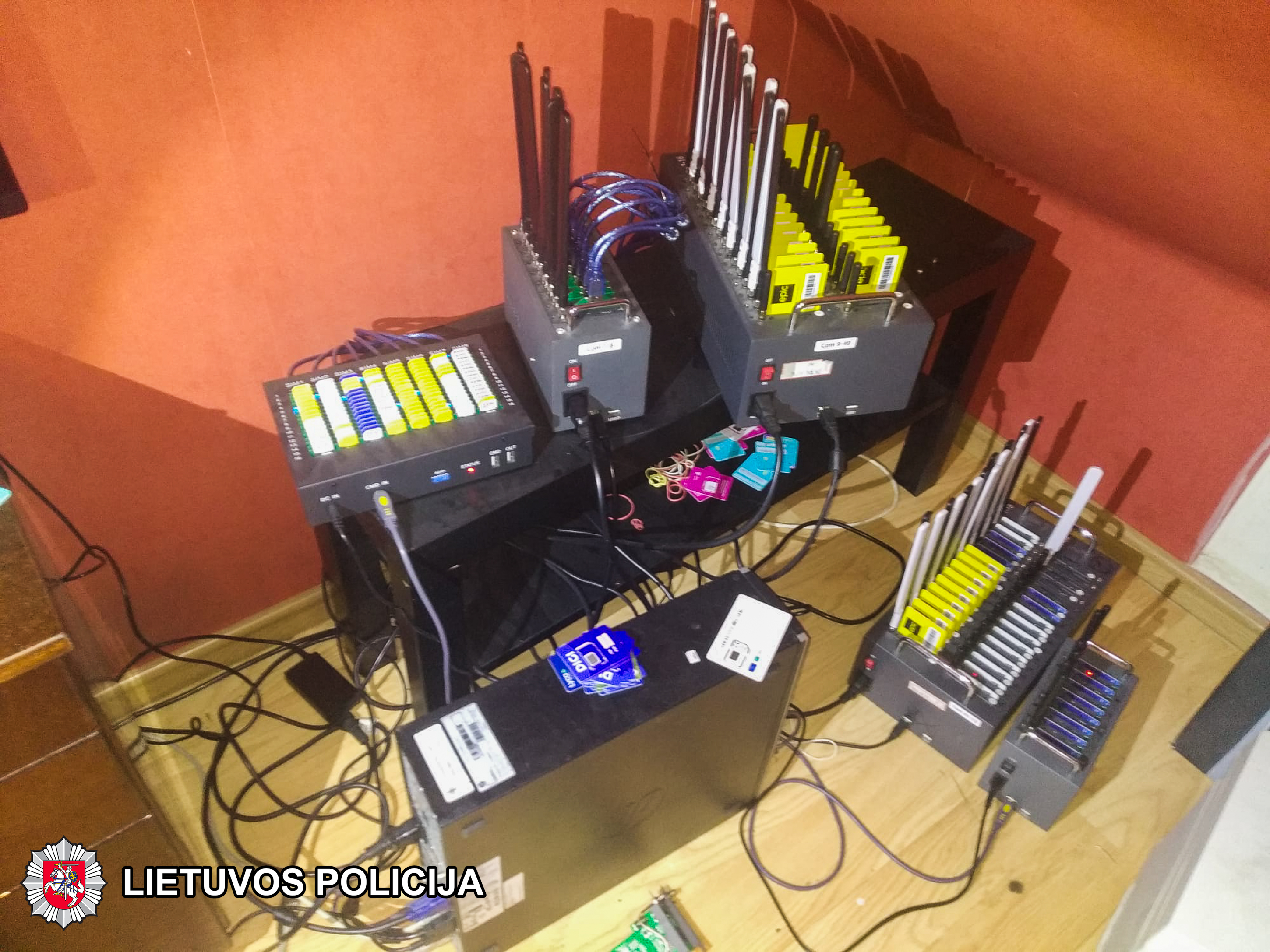 Vilniaus apskrities policija per kratas aptiko apie 75 tūkst. įvairių šalių operatorių SIM kortelių, apie 100 kompiuterių ir sulaikė du įtariamuosius.
