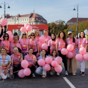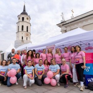 „Vilniaus maratonas – didžiausias bėgimo renginys Lietuvoje, kasmet sutraukiantis tūkstančius žmonių. Džiaugiamės šiemet tapę jo dalimi. Mūsų komanda ne tik kvietė į simbolinį 3 km ėjimą, bet ir specialiai įrengtoje palapinėje kartu su Nacionalinio vėžio instituto gydytojais, tarp kurių buvo ir radiologė, echoskopuotoja dr. Rūta Briedienė, konsultavo apie ankstyvą krūties vėžio prevenciją ir diagnostiką.