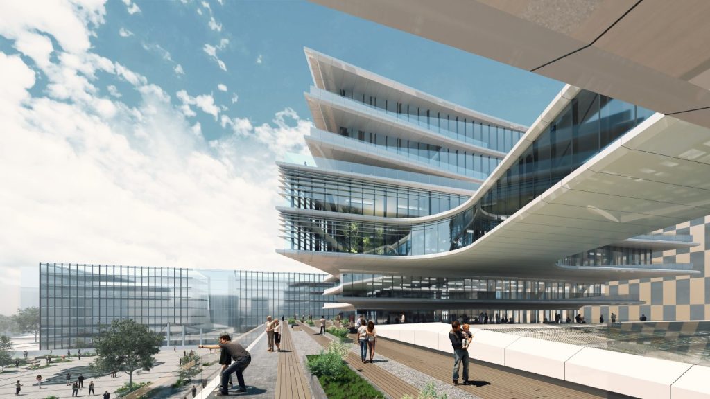 Projekto autoriai – architektų biuras „Zaha Hadid Architects“, dirbantis kartu su lietuvių architektų studija „Unitectus“. Pagal projektą bus statomas dviejų korpusų verslo centras – 8 ir 9 aukštų pastatai. Bendras plotas sieks beveik 24 tūkst. kv. m.