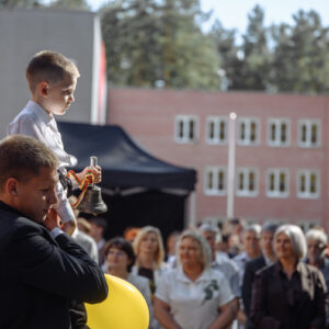„Sveikinu visus Rugsėjo 1-osios proga. Tai, be abejo, ypatinga diena visiems čia esantiems: mokiniams, jų tėvams bei pedagogams. Šiandien ši šventė taip pat ypatinga tuo, kad šalia gimnazijos pradeda veikti naujasis modulinis darželis, kuris buvo pastatytas itin greitai, vos per dvi savaites, nepaisant to, kad projektui įgyvendinti prireikė dvejų metų“, – sakė vicemeras A. Vaitkevičius.