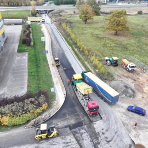 Nors ruduo jau eina į pabaigą, vis dar palankios oro sąlygos leidžia ir toliau nuosekliai tęsti kelių ir gatvių asfaltavimo darbus Vilniaus rajone.