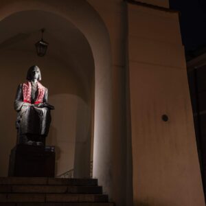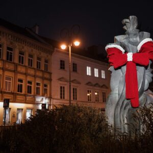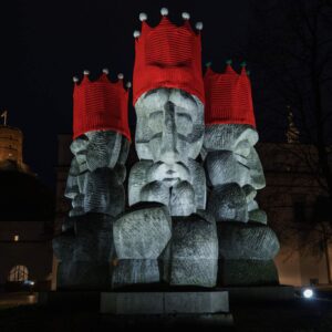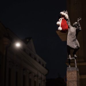 Kalėdų laukiantis Vilnius vakar pabudo dar magiškesnis – naktį dalis miesto skulptūrų buvo apgaubtos ypatingu dėmesiu. Šildančiais mezginiais pasidabino net keliolika meno objektų sostinėje. Kunigaikštis Gediminas, Žemaitė, Užupio undinėlė, Žibintininkas, Paupio gorila – tai tik dalis skulptūrų, tapusių jaukių miesto švenčių dalyvėmis.