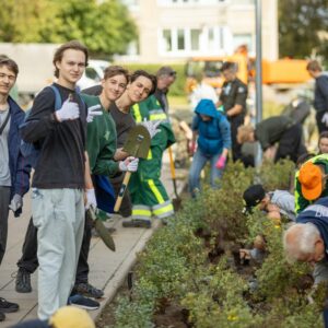 Šeštadienį, Justiniškėse, Šypsenų alėjoje susirinko keli šimtai vilniečių – šeimos su vaikais, paaugliai, vyresnio amžiaus žmonės. Gausus būrys talkininkų vos per valandą apželdino tarp daugiabučių esančią žaliąją erdvę.